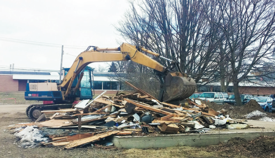 This week, the college made preparations for the summer’s renovations. To clear room for construction equipment, construction crews tore down a garage on the corner of Galloway Drive and West Street.