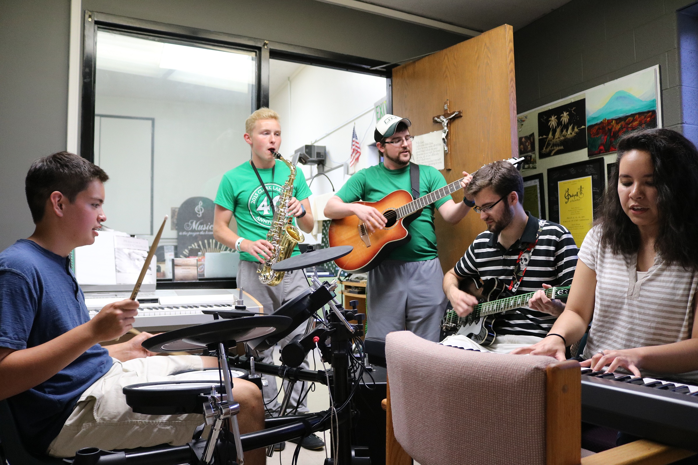 The group started to perform at school functions, but it wasn’t until early May of this year that the band’s 10 current members first discussed producing an album. Three months later, “The Ninth Hour, Vol. 1,” was released on Aug. 20. It contains 10 original songs which range in style from plaintive ballads to earnest love songs to instrumental jazz pieces. Led by Justin Marcero, the choral director of Lumen Christi, and comprised of both students and alumni, The Ninth Hour used many instruments throughout the 10 tracks, including guitar, trumpet, saxophone, and drums.