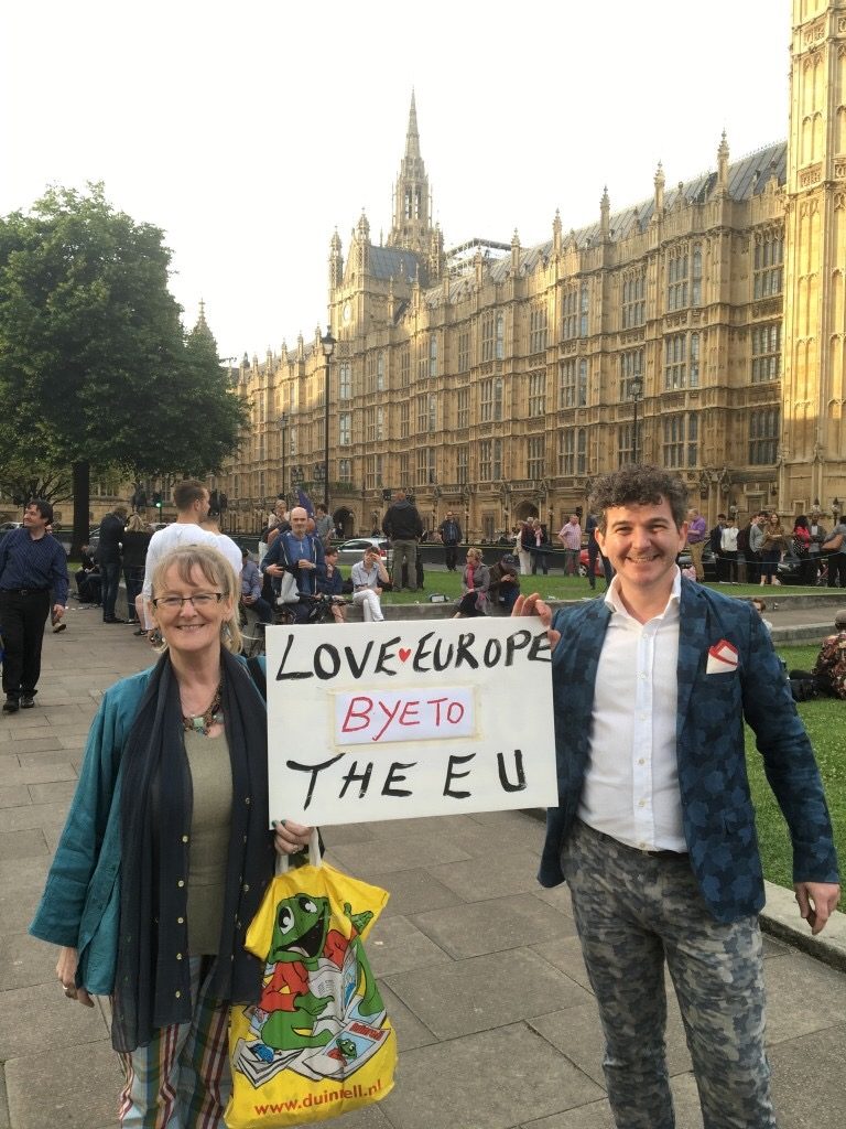 Rachael and Tom, from Cambridge, England, looked visibly shaken by the outpour of support for British independence in Westminster. They both voted remain, and are shocked that leave triumphed with a margin of more than 1 million votes.