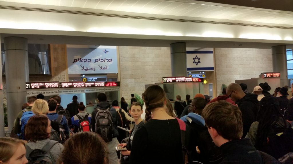 Before taking the nearly 11-hour journey from Newark, New Jersey, students expressed some nervousness over the security measures required to fly to Israel. Each passenger was interviewed about their trip plans, preparations, and connections to the Middle East prior to boarding.