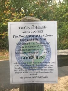 The City of Hillsdale took aim at Canadian geese this week by launching a hunt at Baw Beese Lake.