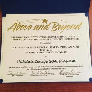 The Special Education Assistance GOAL program was recognized in May with an “Excellence in Special Education” award.