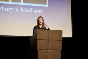 She also discussed the chief justice’s power to assign opinions, a task which he can keep for himself, which he often does for the more “blockbuster” opinions, or assign to one of the other justices. Barrett noted that Former Associate Justice Antonin Scalia often published his dissenting opinions because he wanted the law school case books to print them.
