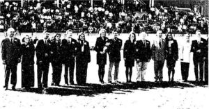 On Friday night, the annual Alumni Awards Banquet was held, attracting around 225 people. Soon, there was a steady trickle of alums, revisiting their respective Greek houses and reliving fond memories. But Homecoming proper begins on Saturday. This year, a special ceremony served to kick off the festivities — the long-awaited re-dedication of Central Hall, signaling an end to the massive restoration project undertaken by Hillsdale. The ceremony, according to Director of Alumni Affairs Tim Sullivan, was well-attended and a smashing success. Involved in the spectacle was a ribbon-cutting ceremony, replete with emissaries from all levels of college life. Participants in the actual cutting included Jim Feaiherston, ’56, who is President of the Alumni Board, Dr. Roche, and Don Mossey, President of the Board of Trustees. Representing the student body were Aaron Streett, President of Student Federation, Knute “Cody” Lee, President of this year’s Senior Class, and Ben Bauman, President of Men’s Council, which was instrumental in raising needed funds.