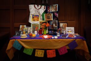 Everything at the celebration is oriented toward that, she continued. The ofrenda, or altar, at the Day of the Dead event was dedicated to Frida Kahlo, a famous Mexican painter, and included replicas of her artwork.