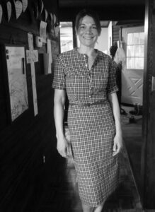 I have always been really fond of Nancy Drew. So, I found some old fabric and then a pattern from those times, and I made this really cool Nancy Drew-looking dress.