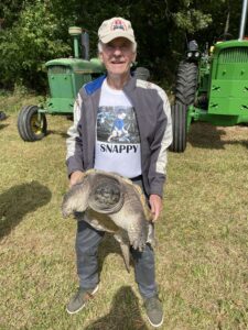 Hunter ran off to another part of the field to meet Snappy, a large turtle surrounded by a group of children. According to his owner, Bill Martinson, Snappy is a 30-year-old, 60-pound snapping turtle.