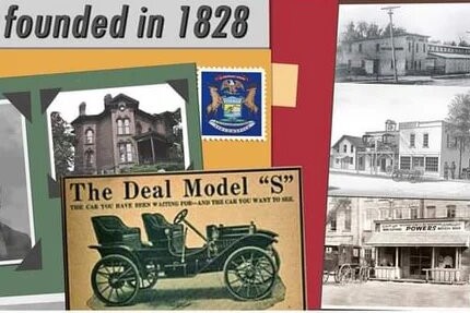 The images will include Sauk Trail fur trading with Chief Baw Beese, the Underground Railroad with the Munro House, the Grosvenor Museum, the American flag with four military service people from the town, and the Sauk Theater, alongside other pieces of Jonesville history.