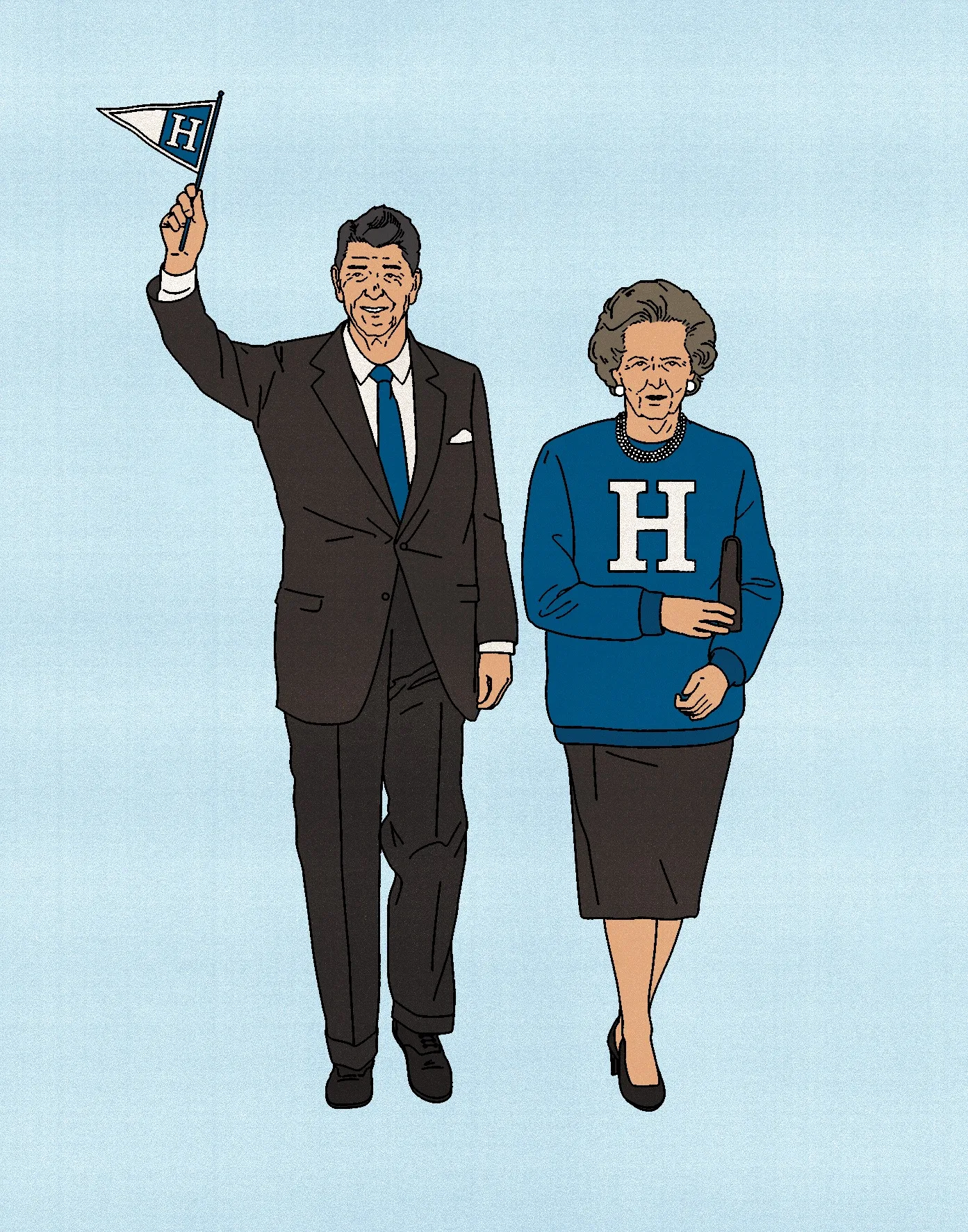 Some students appreciated the article for the art published with it. An illustration by Álvaro Bernis shows Ronald Reagan waving a Hillsdale banner and Margaret Thatcher wearing an oversized Hillsdale sweater.