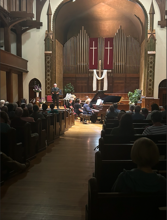 Wyse’s husband, Ned, accompanied the duo and narrated the program, performing a selection of recitations to introduce each movement. The recital ran from 8-9:30 p.m. and showcased a diverse selection of pieces that followed with the theme of the program.