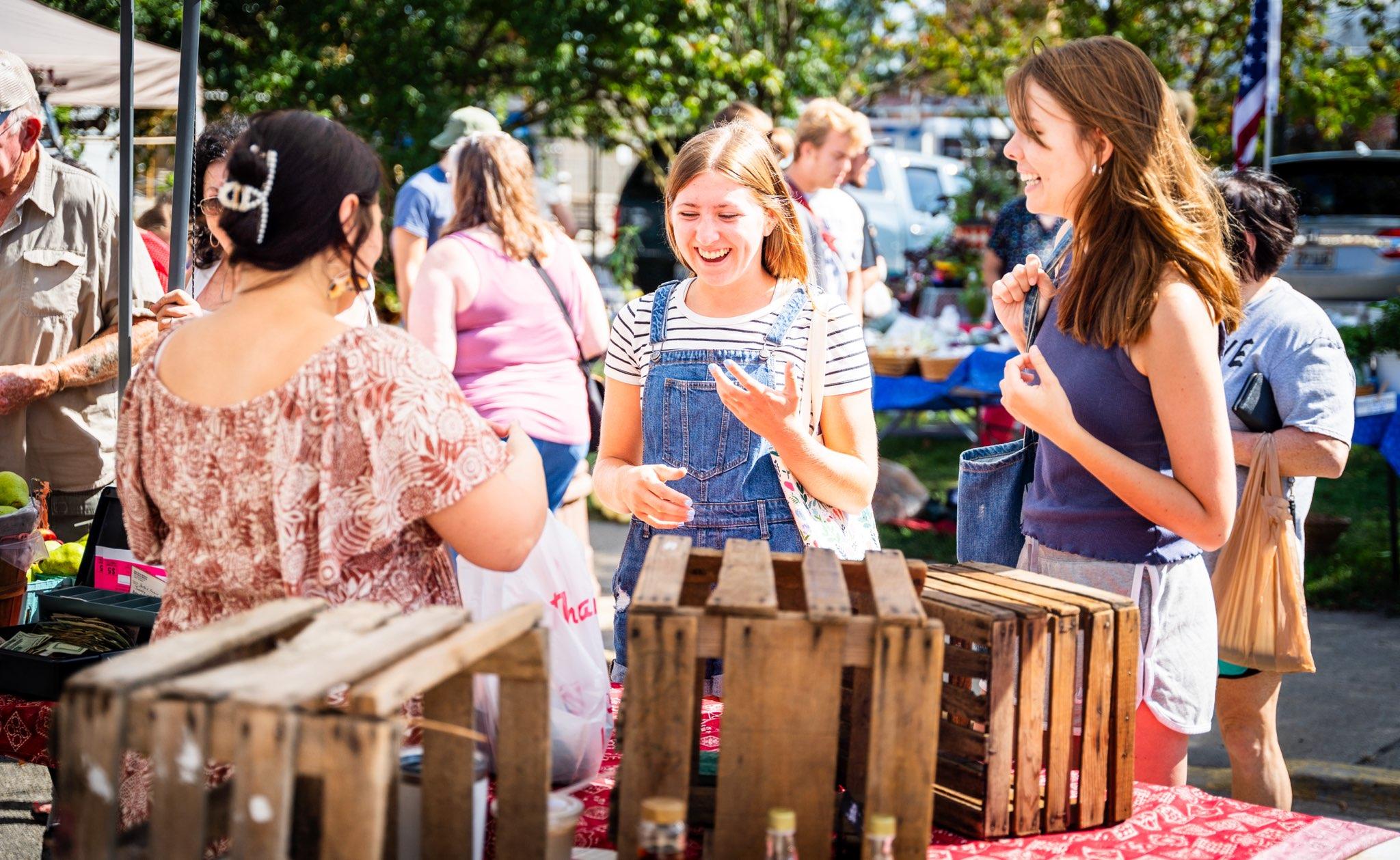 Christensen and junior Ruthie Chinery enjoy the farmers market.