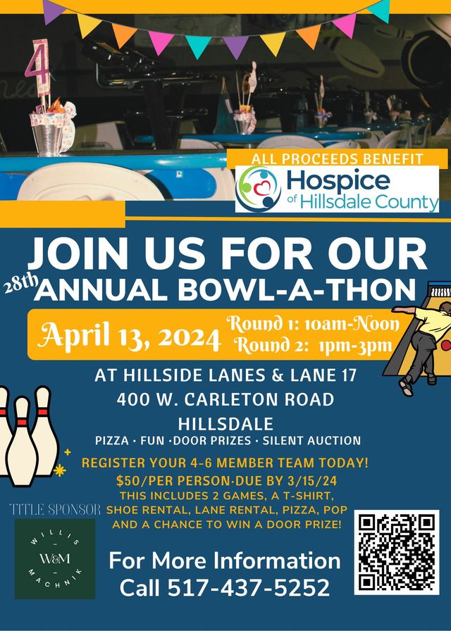 Hospice of Hillsdale County will host its 28th Annual Bowl-A-Thon at Hillside Lanes on April 13.