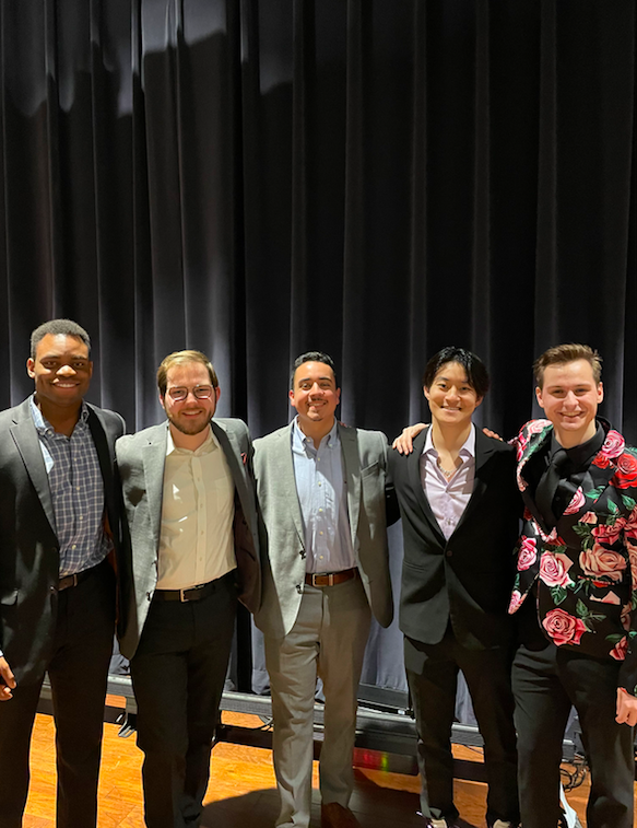 Junior Dravyn Spies, seniors Chris Dick and Fernando Bravo, and junior Taylor Chen and Nathan Stanish (left to right) pose for a photo at the event.