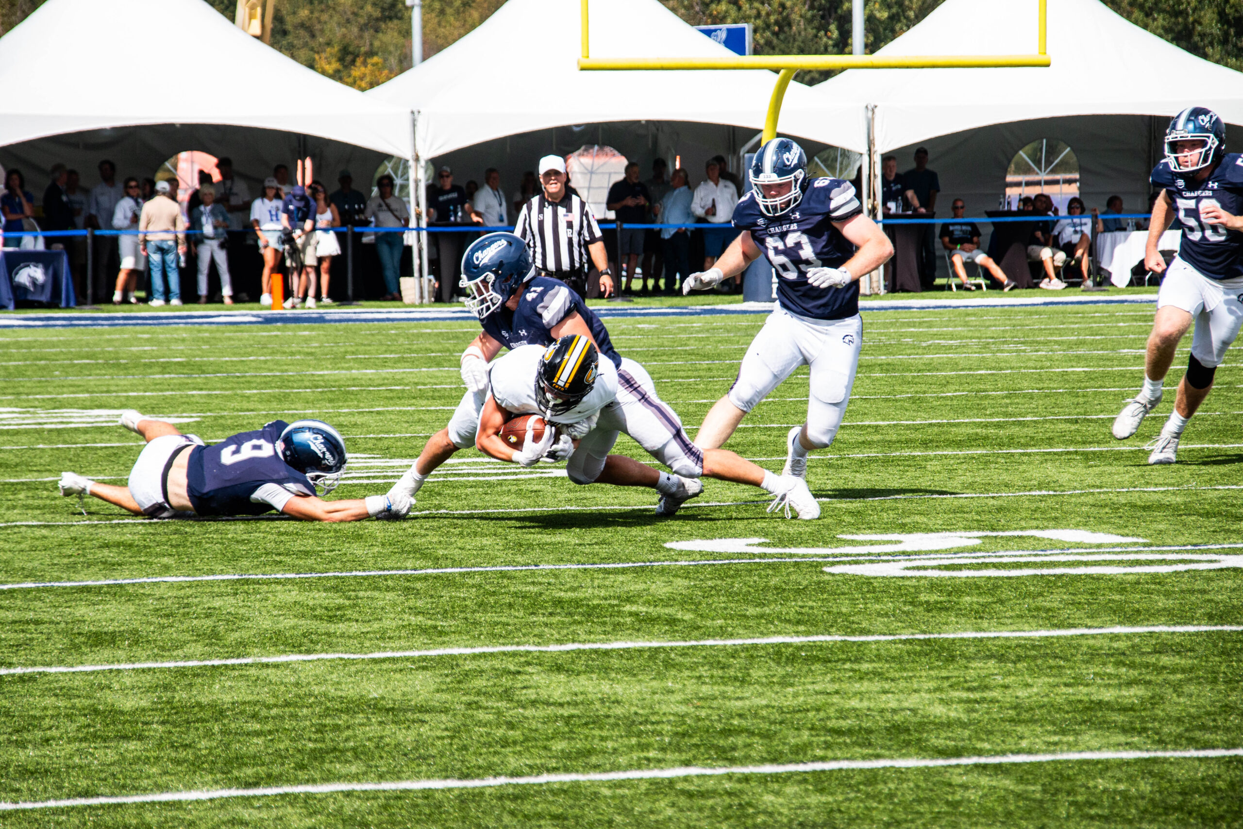 The Chargers scored on their opening drive when sophomore quarterback Colin McKernan found sophomore receiver Andrew Konieczny in the endzone for a 25-yard touchdown pass.