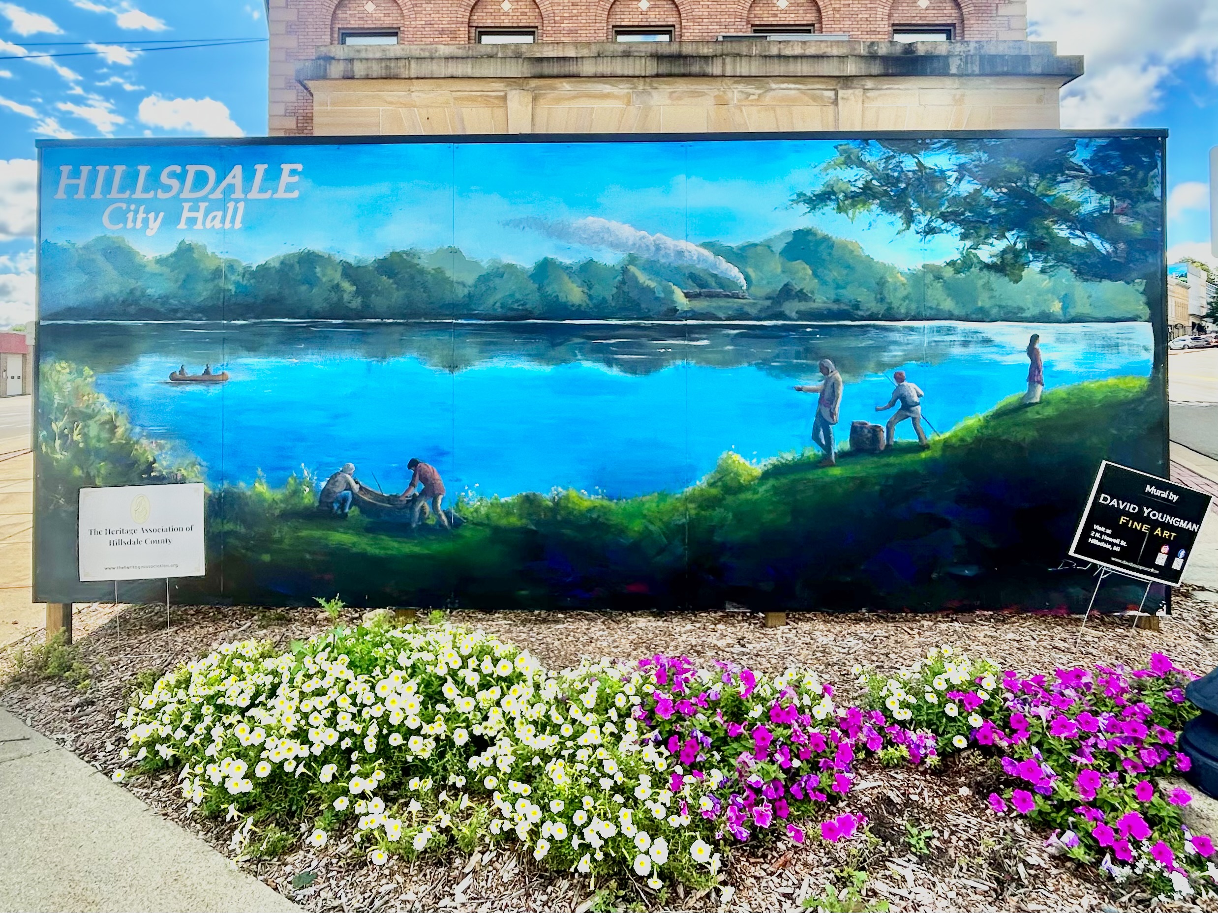 The Hillsdale Heritage Association, a community organization aimed at preserving Hillsdale County’s history through art, installed a three-panel mural on the north side of City Hall in May.
