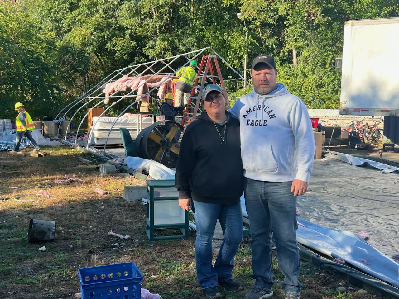 Missy DesJardin and her husband, Brian, while Camp Hope is being removed. Moira Gleason | Collegian