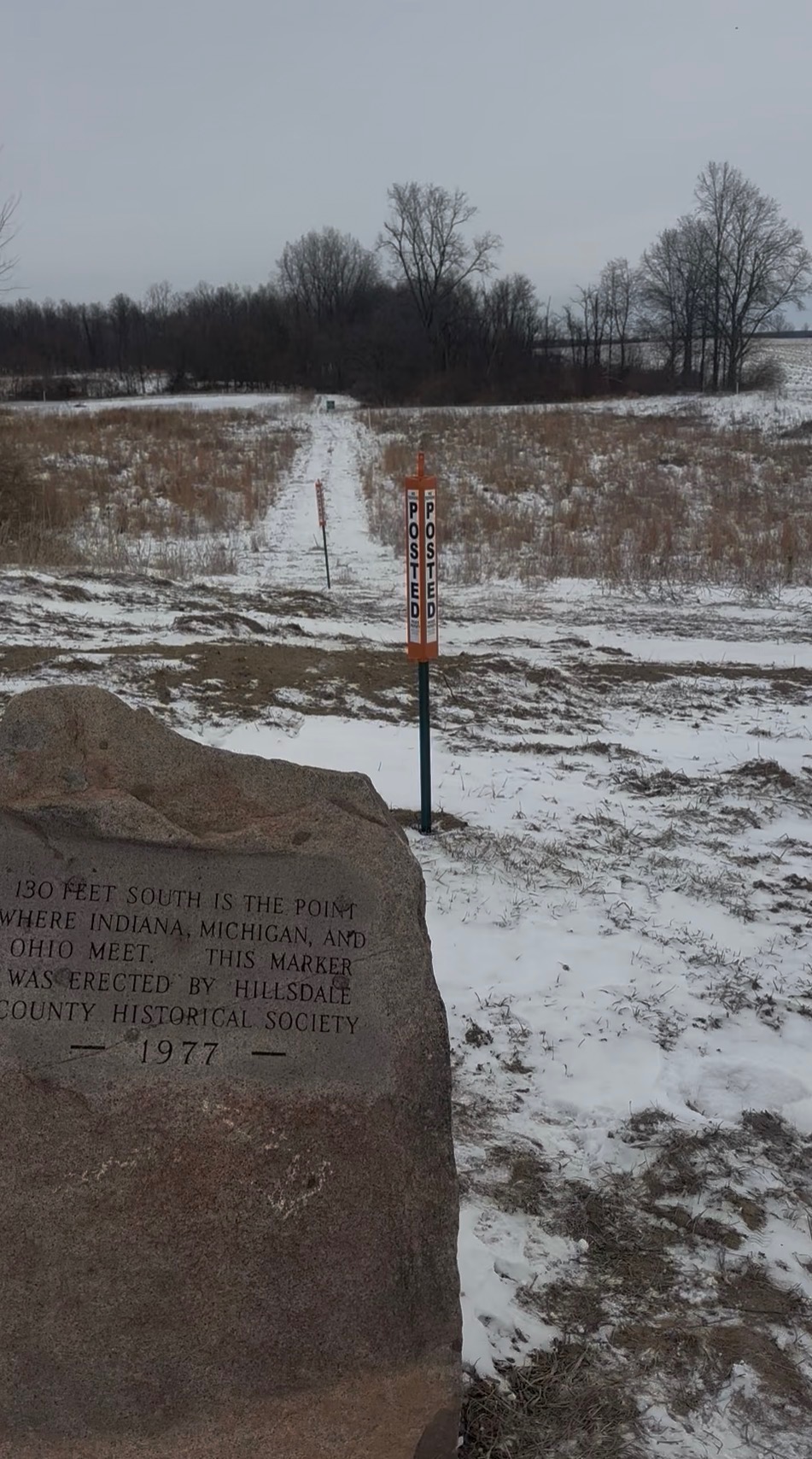 junction point where Michigan, Ohio, and Indiana meet, but where the border lines continue from there remains unclear. Unlike Michigan’s borders with Ohio and Wisconsin, which were settled through conflict and court rulings, the Indiana border has a single marker that stands as the official tri-state boundary point.