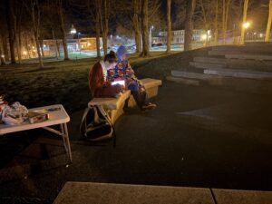 Throughout the evening, students stopped by the Dorothy D. and Joseph A. Moller Amphitheater between Delp Hall and the library to listen to parts of the epic.